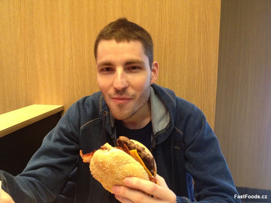 Dal jsem si věc u nás naprosto neznámou, Českou republikou nedotčenou, a to Angus Bacon & Cheese menu. Tenhle třílibrák se 100% hovězím masem a speciálním kořením a slaninou, dvěma plátkami amerického sýra navrch s červenou cibulkou a okurkou, byl přímo božský. K tomu si připočtěte free refil (možnost dotočit si nápoj kdekoliv a kdykoliv, což je americký standard) a jste ve fast foodovém nebi. Porce hranolek a pití je v USA úměrná porci z McDonaldů provozovaných v ČR.