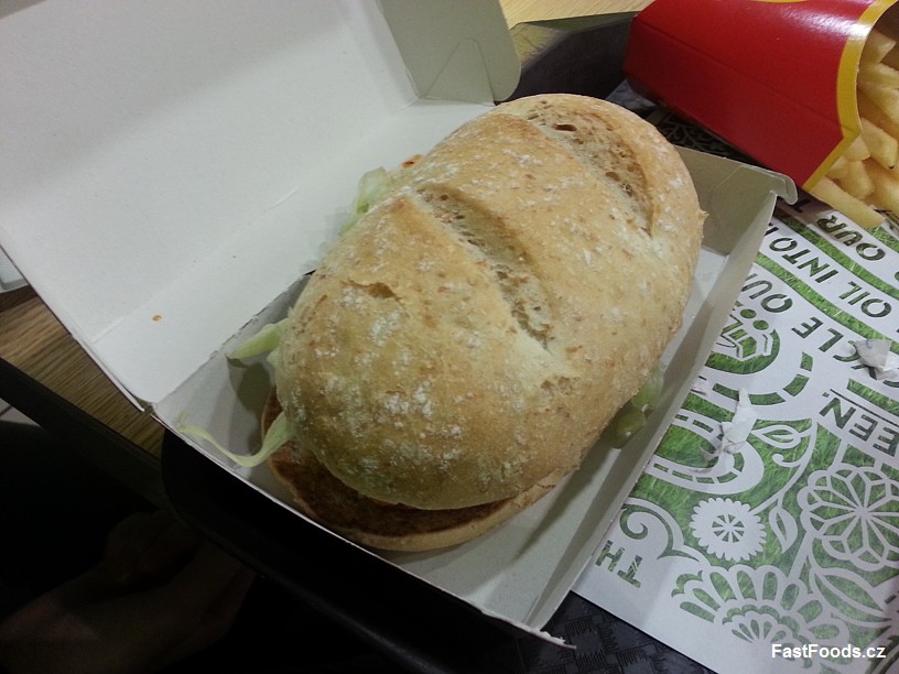 Objednali jsme si Střední Big Mac menu a střední "Chicken Legend with Spicy Tomato Salsa". Kuřecí Chicken Legend byl opravdu legendární, naposledy jsem ho měl na německé dálnici předminulý rok a byl famózní. Legenda se tedy opakovala. Jedná se o šťavnatý prsní kuřecí řízek s křupavou vrstvou, salátem a pikantní rajčatovou omáčkou v podélné housce. Stačí jen sfouknout mouku z housky a jde se na věc. Hranolky byly lehce gumové, ale ještě v normě.