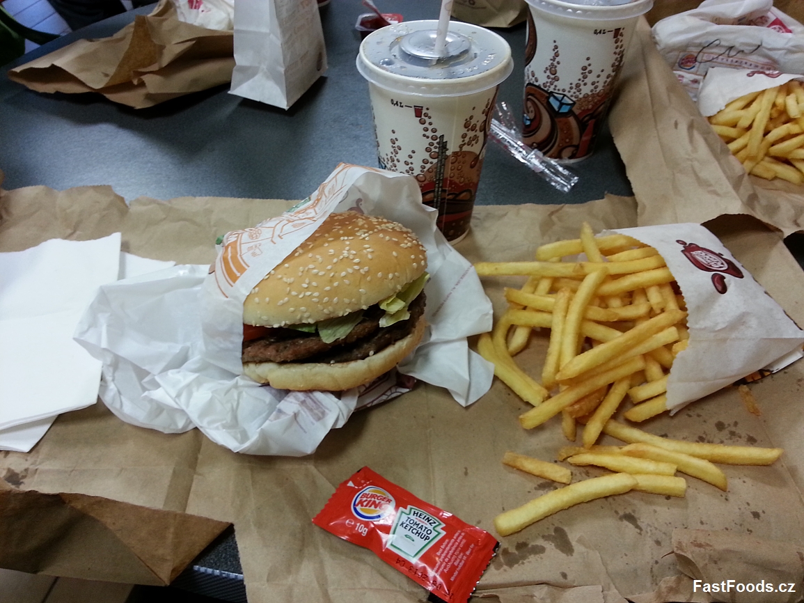 Objednali jsme si Double Whopper menu, hranolky, kolu a kečup, který byl zadarmo.